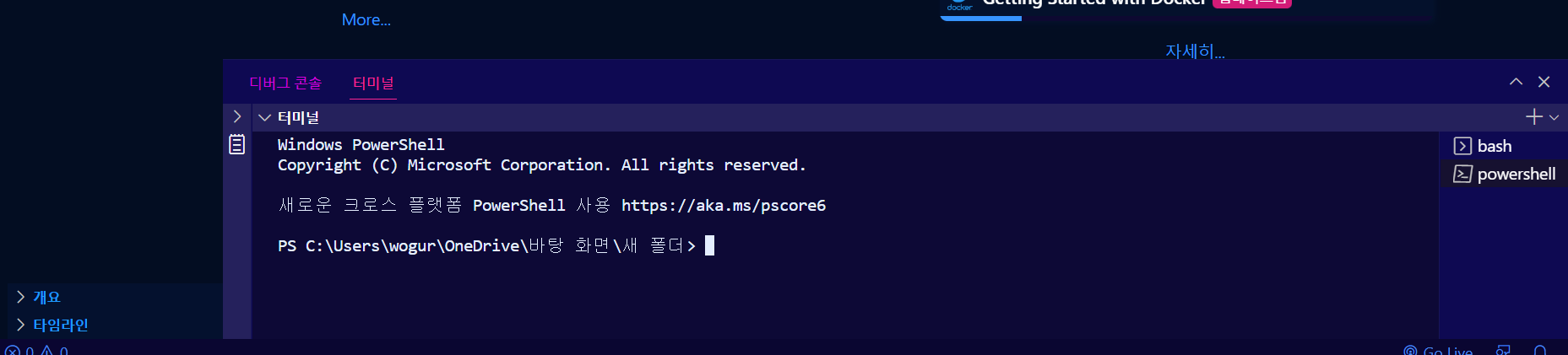 Ctrl + ` 를 눌러 터미널 창을 연다!