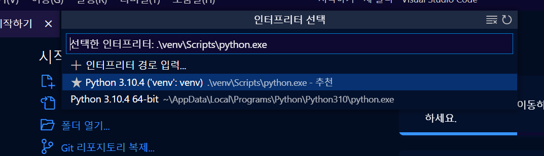 1. vscode 가상환경 설정!